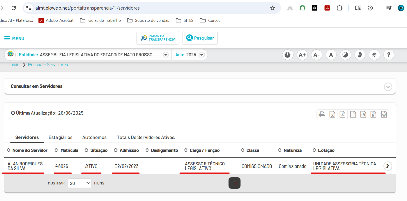 Alan Rodrigues da Silva (Alan Benin), lotado na Unidade de Assessoria Técnica Legislativa do gabinete do deputado Faissal Calil (Cidadania), nomeado desde 2 de fevereiro de 2023, na Assembleia Legislativa do Estado de Mato Grosso como “comissionado”, também conhecido por ser o “dono da página – Alta Floresta Mil Grau“, continua transitando livremente pelo município de Alta Floresta com seu crachá de assessor parlamentar, mesmo após ter sido investigado, processado e condenado pela Justiça Eleitoral, pela participação ativa na maior fraude eleitoral nas redes sociais da história de Mato Grosso e possivelmente do Brasil.