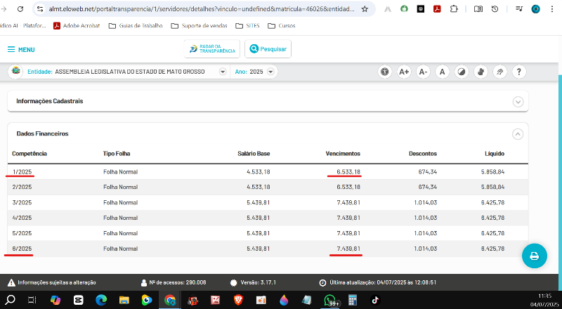 A recompensa salarial se deu pela mudança de faixa no nível de assessoria do jovem prodígio, que até Fevereiro de 2025 era mantido na faixa de nível *ATL III, com salário bruto de R$ 6.533,18, mas, a partir de Março (mês da cassação), foi “promovido” a *ATL IV, com salário bruto de R$ 7.439,81. (ATL é a sigla utilizada para identificar o Assessor Técnico Legislativo).