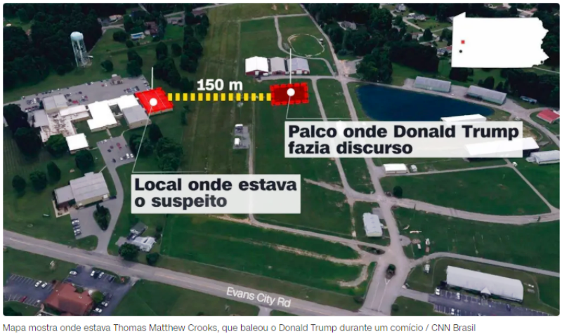 Autor do atentado, Crooks estava a cerca de 150 metros de Trump, segundo análise da CNN.