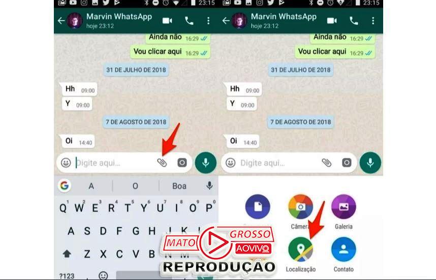 - Por último, envie a sua localização no ícone da setinha e pronto. A geolocalização foi compartilhada!