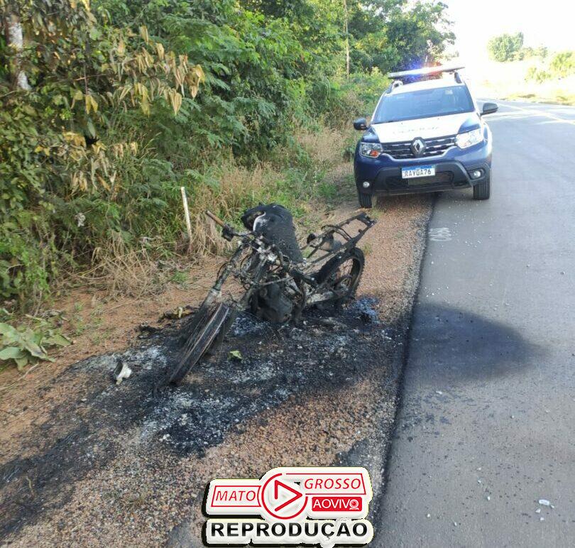 Ao chegarem ao local, a equipe do Corpo de Bombeiros encontrou a motocicleta completamente destruída.