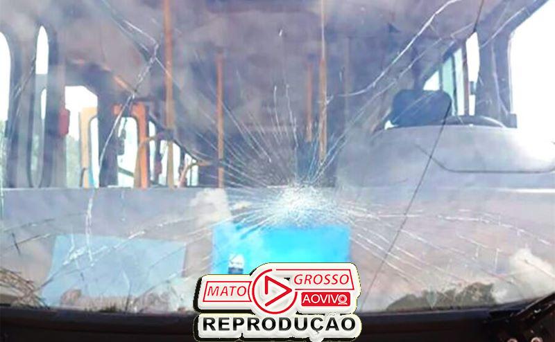 Nesse momento, o caminhoneiro ficou agressivo, pegou um cone que estava na via e o arremessou contra o para-brisa do ônibus, danificando-o. O motorista do ônibus permaneceu dentro do veículo, filmando a ação do suspeito, enquanto o mesmo ainda ameaçava com uma barra de ferro.
