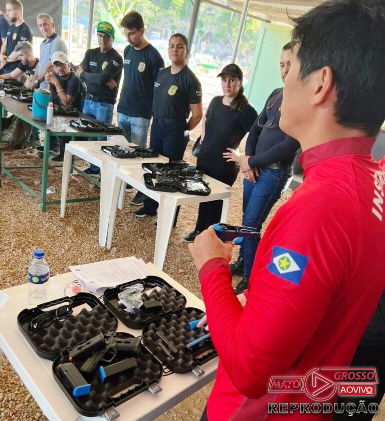 Os policiais civis de Alta Floresta, Colíder, Nova Canaã do Norte, Paranaíta, Apiacás, Nova Monte Verde e Nova Bandeirantes receberam as armas e participaram da habilitação/treinamento ministrada por instrutores da Academia de Polícia Civil – Acadepol, Gerência de Operações Especiais – GOE e Gerência de Armas, Explosivos e Munições – GAEM.
